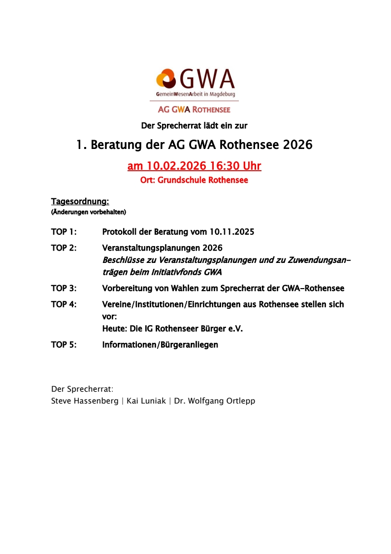 Die Termine der Arbeitsgemeinschaft Gemeinwesenarbeit Magdeburg Rothensee.